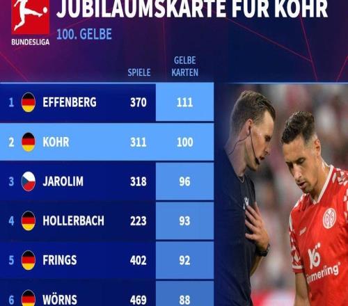 2025-10-08在不久前结束的德甲第6轮比赛中,美因茨客场0比4惨败汉堡,而球队后防大将多米尼克-科尔在本场比赛中领到一张黄...