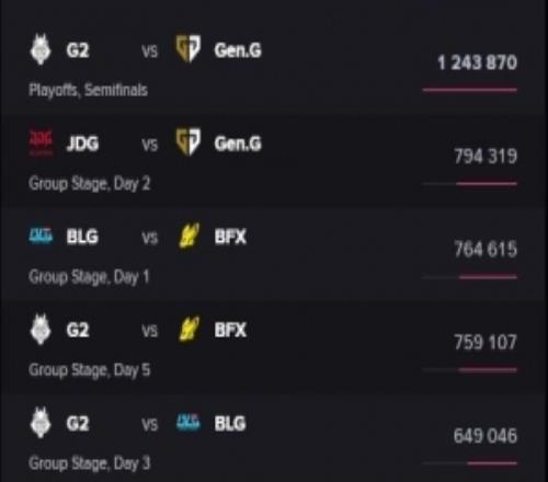 惊天大爆冷!G2横扫GEN国外收视率破百万第二名JDGvsGEN为79万