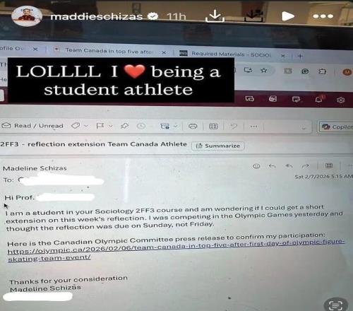 唯恐教授不信,她还贴心地附上了加拿大奥林匹克委员会的一个新闻链接,证实“她确实在参赛”。