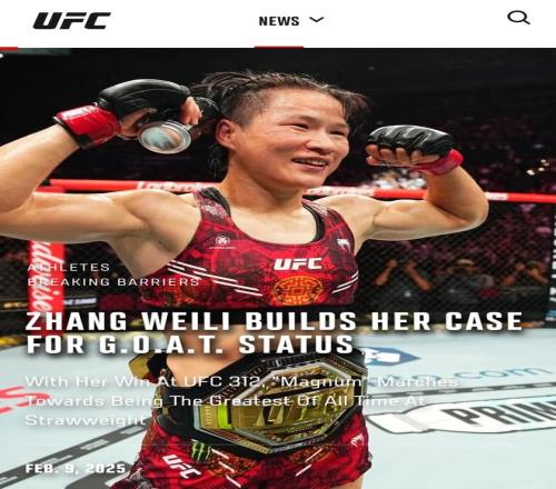 再看张伟丽(亚洲首位综合格斗冠军赛世界冠军)。