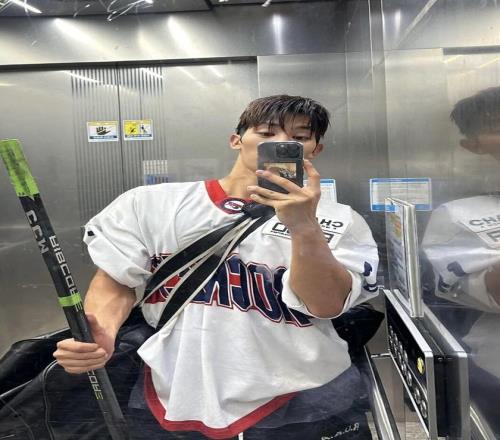 朴元彬与好友同行,简约黑色外套内搭中式盘扣上衣,沉稳中藏着东方雅致。下身搭配随性牛仔裤,利落又自在,于冰场中自成格调。