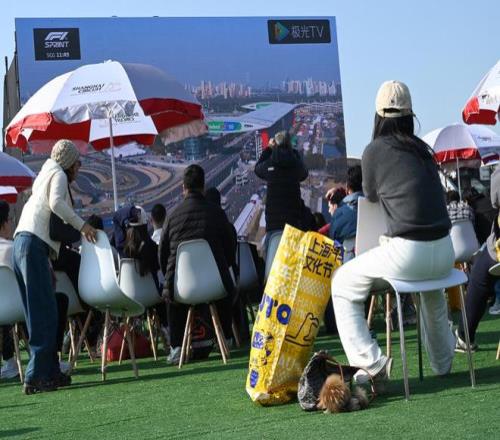 2026年3月13日,周五首日F1冲刺排位赛结束后已近黄昏,车迷们在设立于赛场外的官方纪念品商店前排起长队。