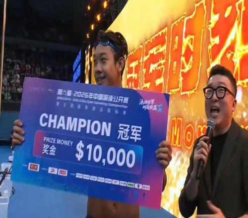 18岁的张展硕在中国游泳公开赛再次带来惊喜,他在男子200米自由泳决赛以1分44秒53刷新个人最佳成绩夺得冠军。张展硕击败了德国名将卢卡斯·马滕斯(1分45秒22获得银牌)和澳大利亚名将威廉·佩特里克(1分46秒14获得铜牌)。张展硕收获了1万美元的冠军奖金。