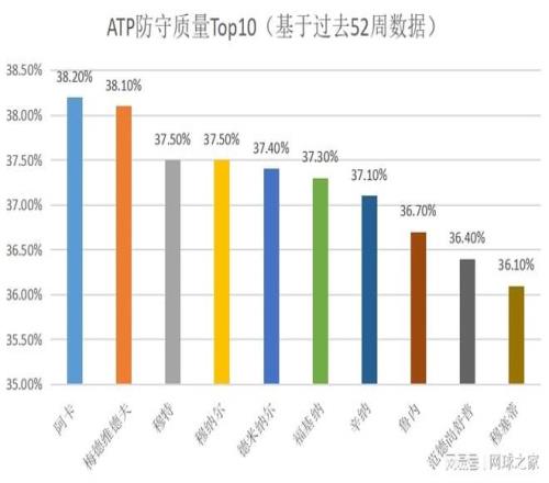 基于以上三大类指标,ATP列出了过去52周防守质量Top10榜单,如下图所示。